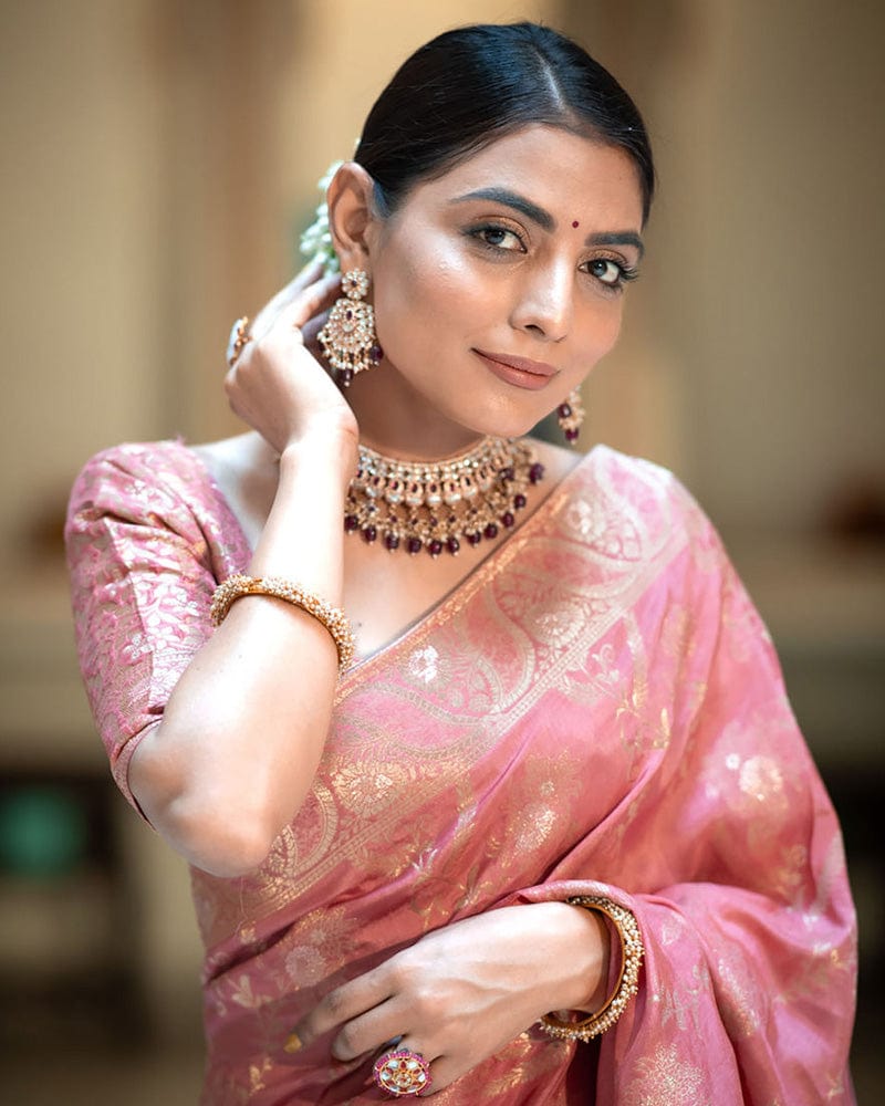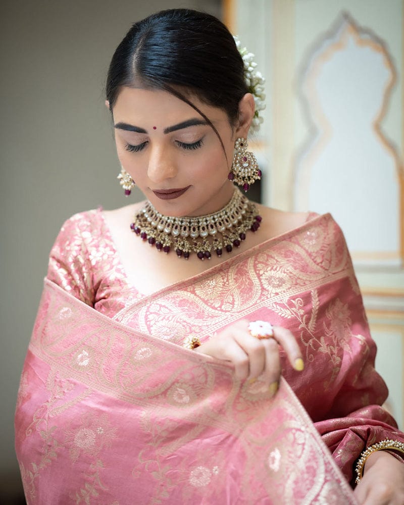 Radiate elegance with this vibrant orange Banarasi Jacquard saree, beautifully adorned with intricate zari weaving. Its rich texture and classic design make it a standout choice for festive celebrations and special occasions. Accompanied by an unstitched blouse, it offers the flexibility to create a personalized, tailored look.