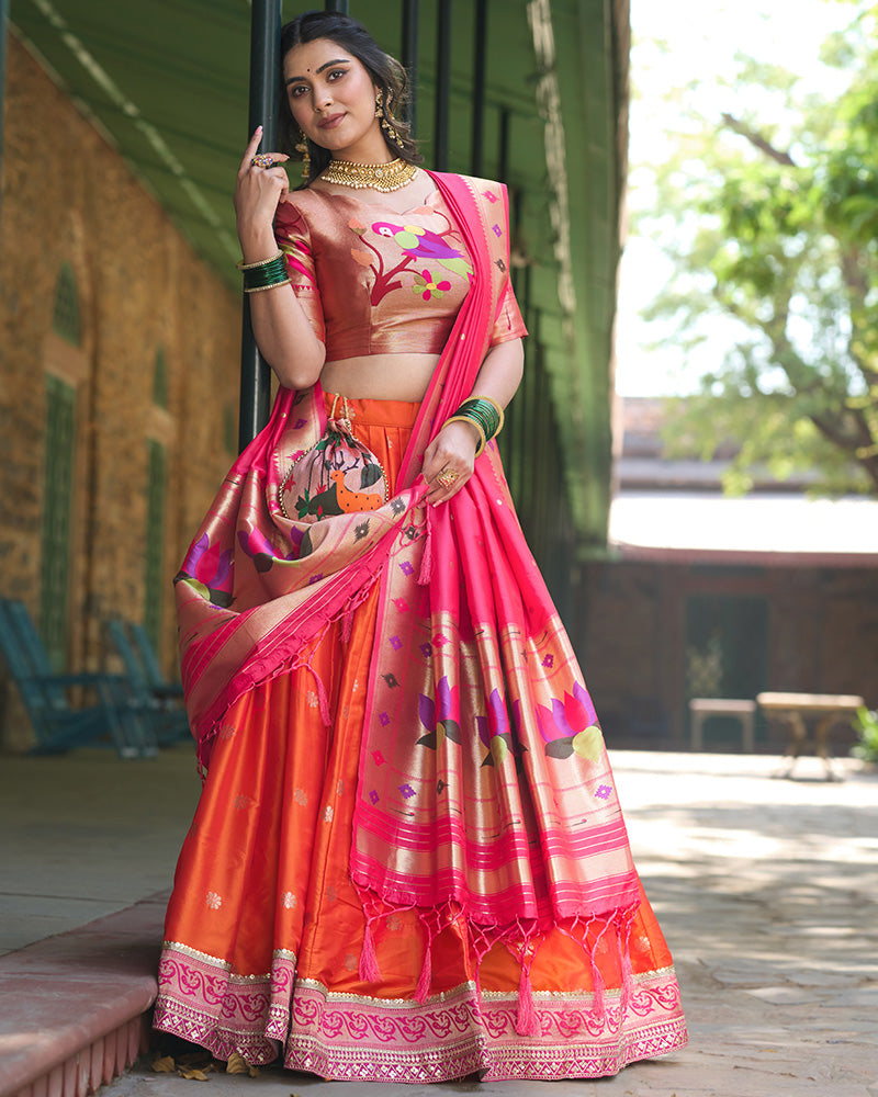 Lehenga Fabric : Jacquard Silk (Paithani)