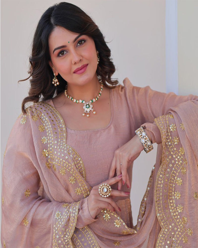 Dupatta : 2.3 Meter Fendi Chiffon With Rich Sequins & zari Embroidered Cut-Work.