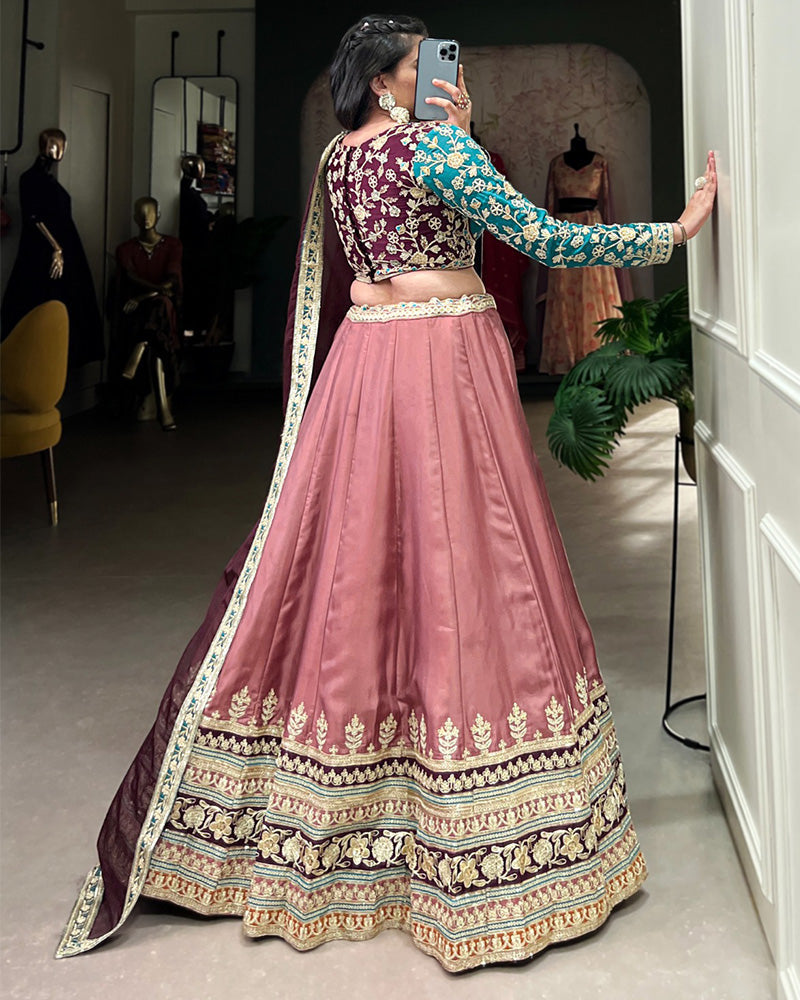 Peach Color Moonga Silk Embroidered Lehenga Choli