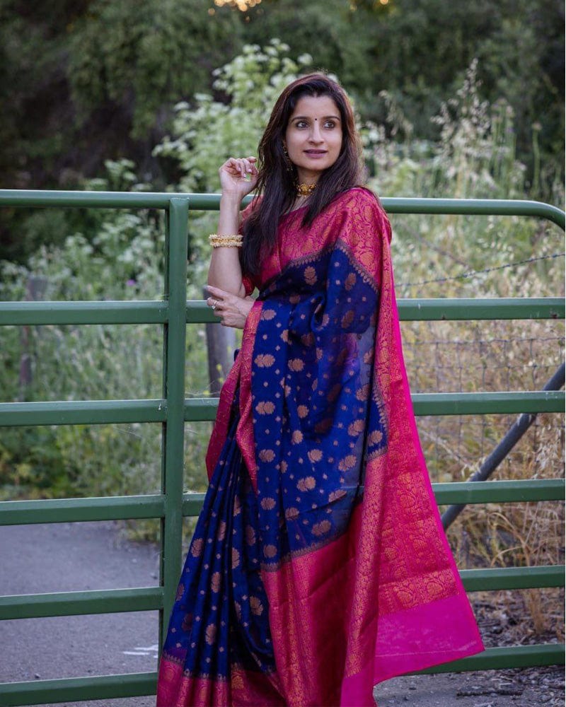 Adorn yourself in the timeless charm of this Pink and Blue Banarasi Silk Saree, a captivating ensemble that beautifully blends tradition with modern aesthetics. The luxurious Banarasi silk fabric drapes gracefully, creating an elegant and regal silhouette. The harmonious combination of pink and blue hues adds a delightful contrast, making it a perfect choice for various occasions. The saree is adorned with intricate detailing, showcasing the artistry of Banarasi craftsmanship. Paired with an unstitched blouse piece, this ensemble allows for a personalized touch to your style. Make a lasting impression at weddings or festive celebrations with this Pink and Blue Banarasi Silk Saree, a symbol of refined elegance and cultural richness.