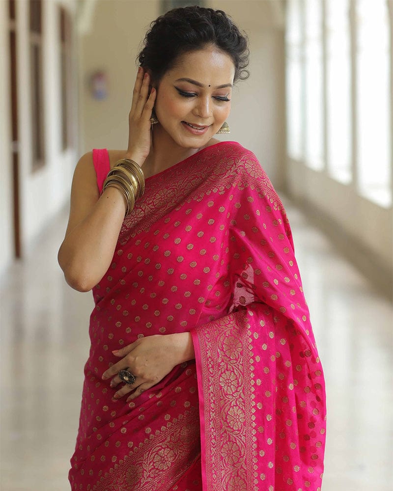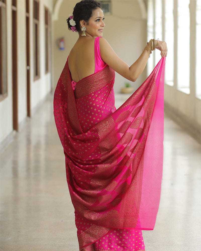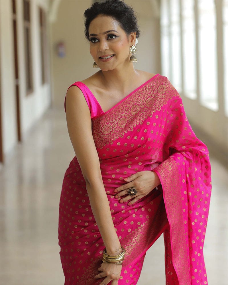Pink Color Banarasi Jacquard Soft Silk Saree