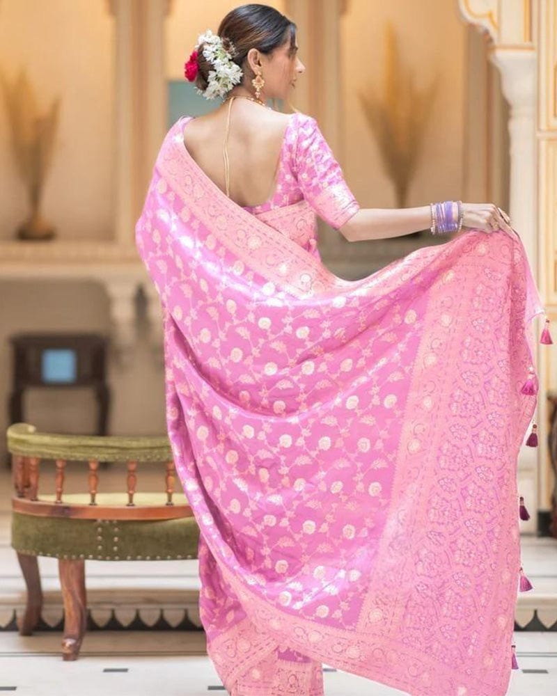 Pink Color Banarasi Jacquard With Zari Work Saree
