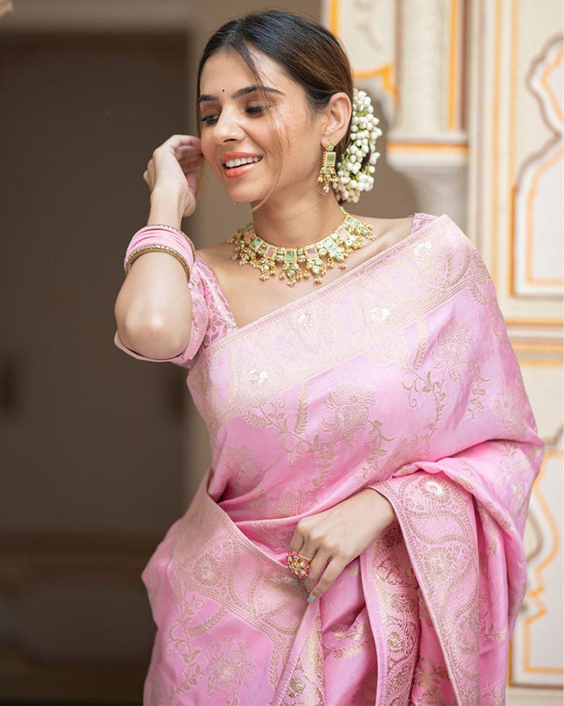 Pink Color Banarasi Jacquard Zari Weaving Saree