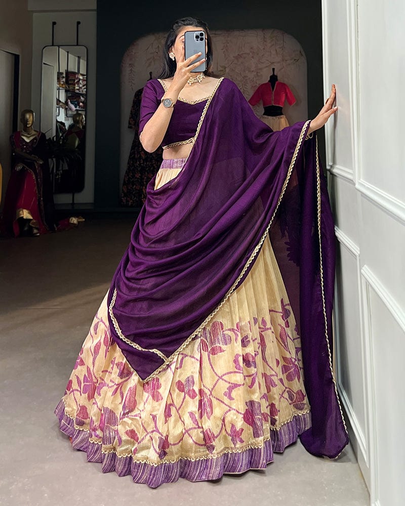 Purple Color Green Silk Printed Lehenga Choli