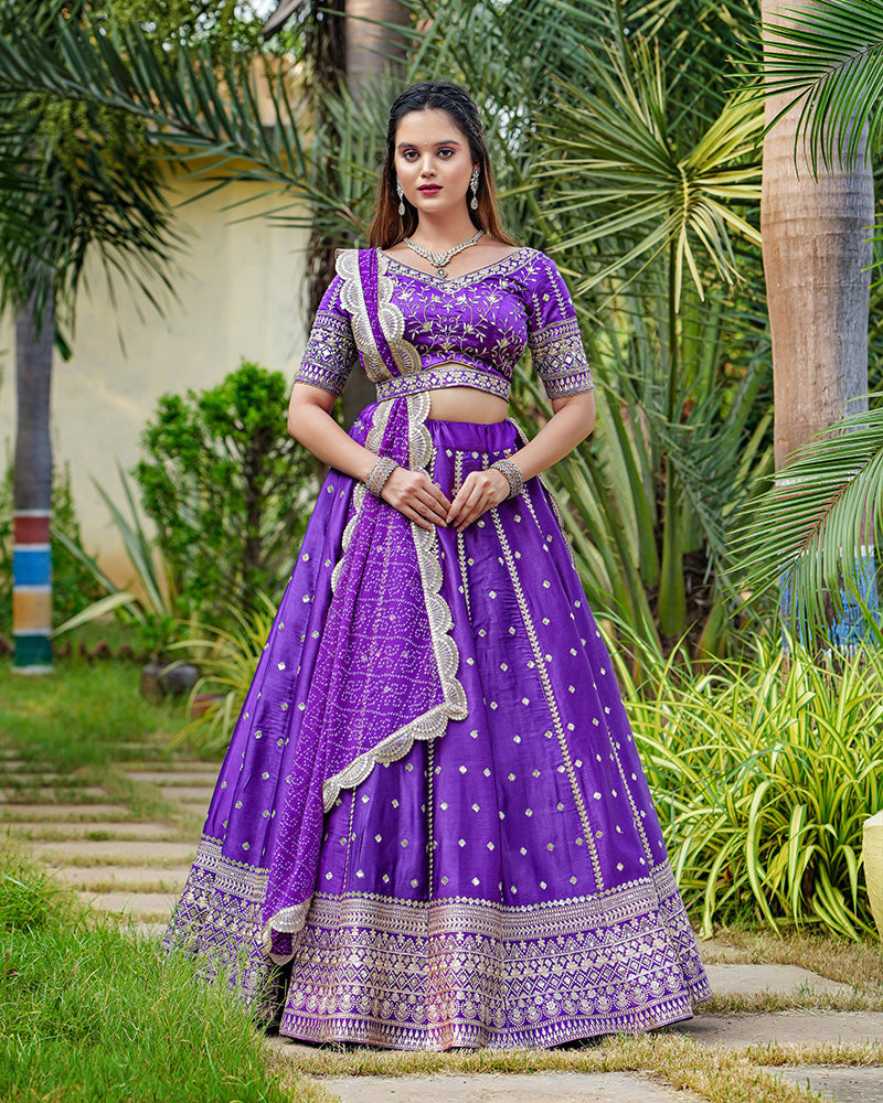 Purple Color Sequence Embroidered Sartin Silk Lehenga Choli