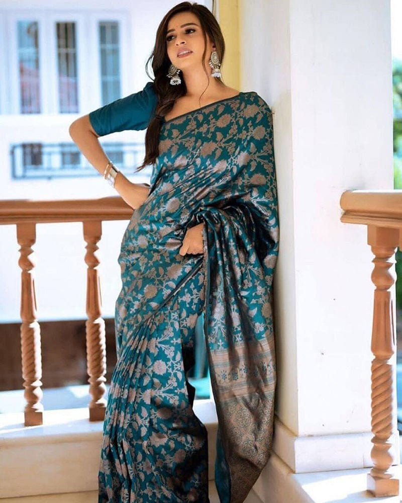 Rama Color Banarasi Jacquard Soft Silk Saree
