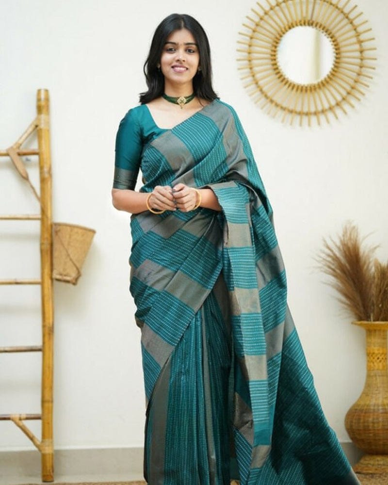 Rama color Banarasi Soft Silk Saree