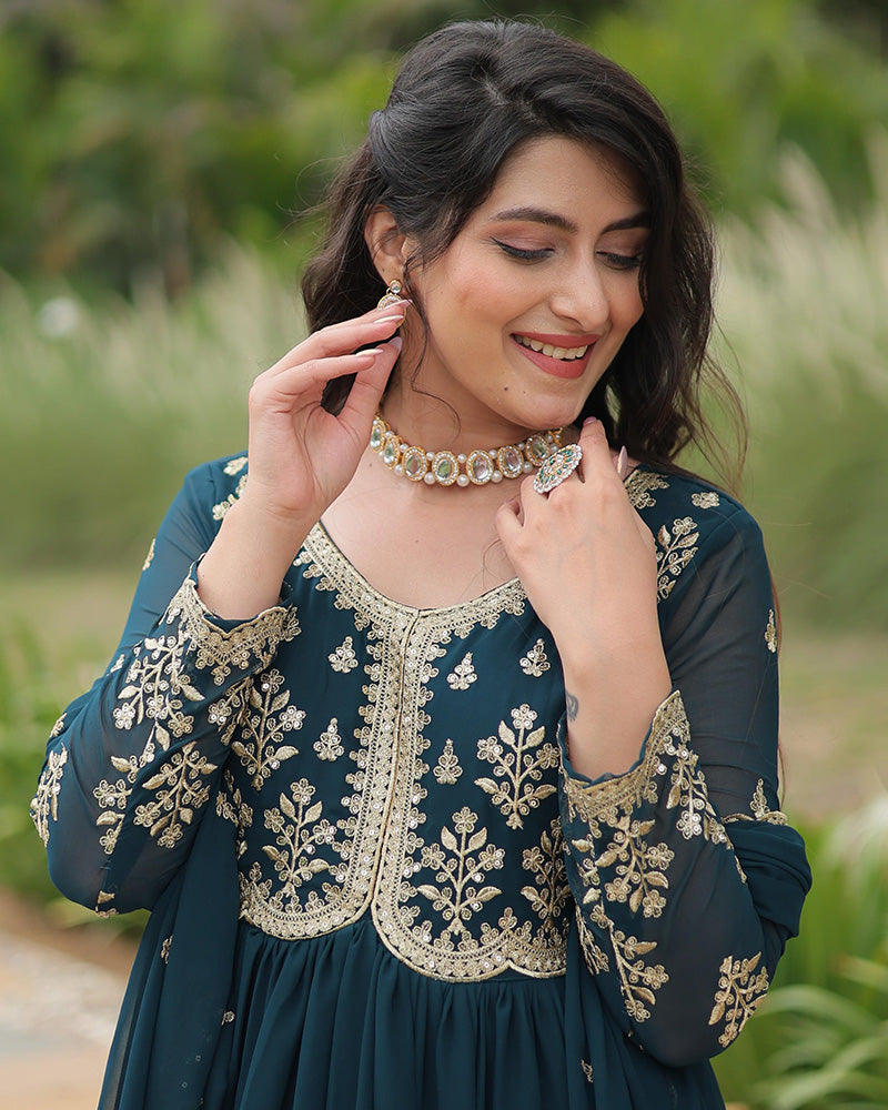 Rama Color Faux Blooming Multi Embroidered Work Gown