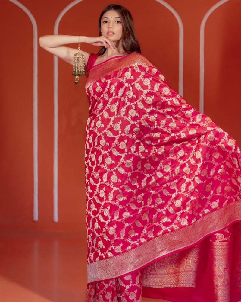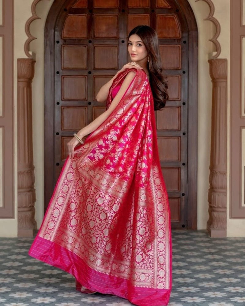 Rani Pink Color Banarasi Soft Silk Saree