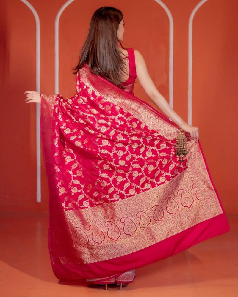 Rani Pink Color Banarasi Soft Silk Saree