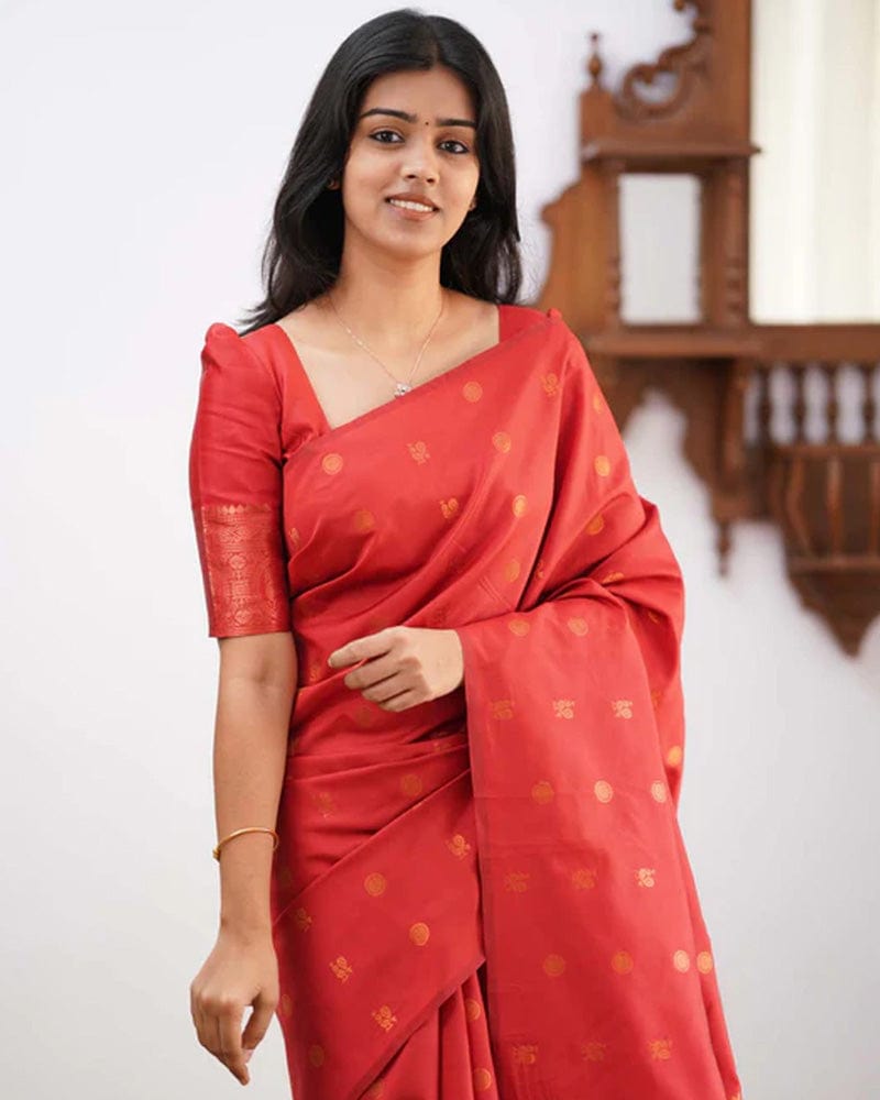 Red Color Banarasi Jacquard Soft Silk Saree