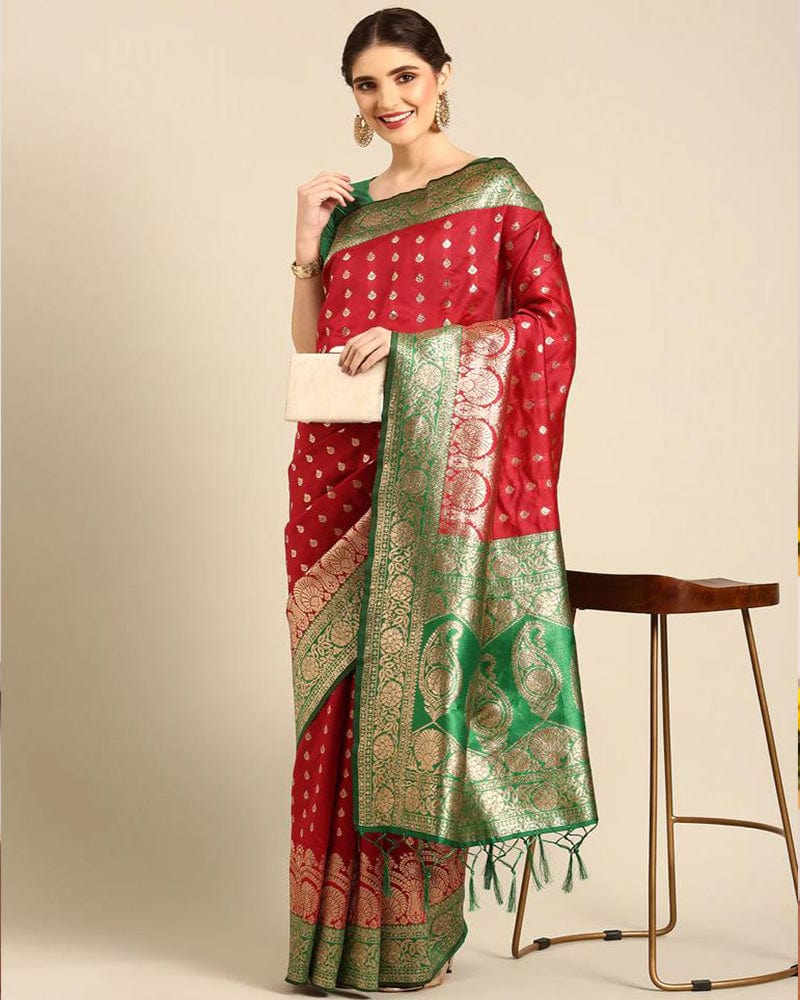 Red Color Banarasi Jacquard Soft Silk Saree