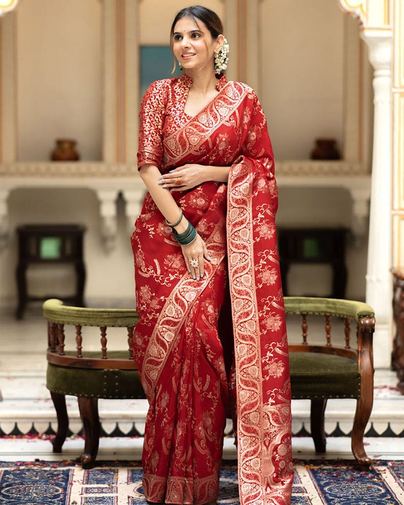 Red Color Banarasi Jacquard Zari Weaving Saree
