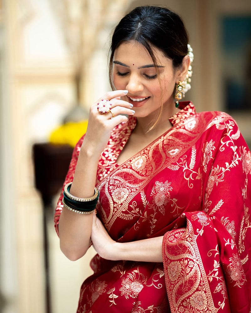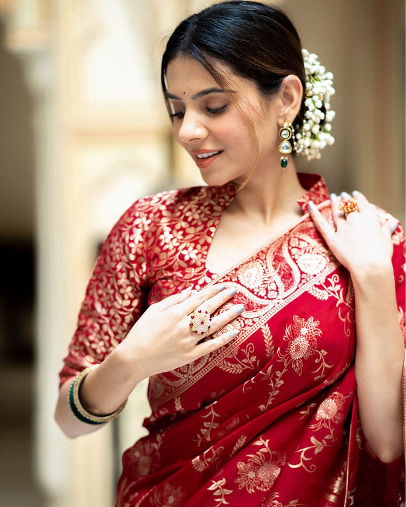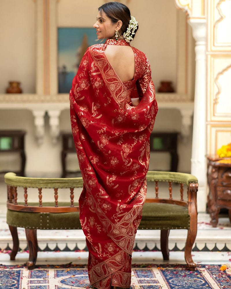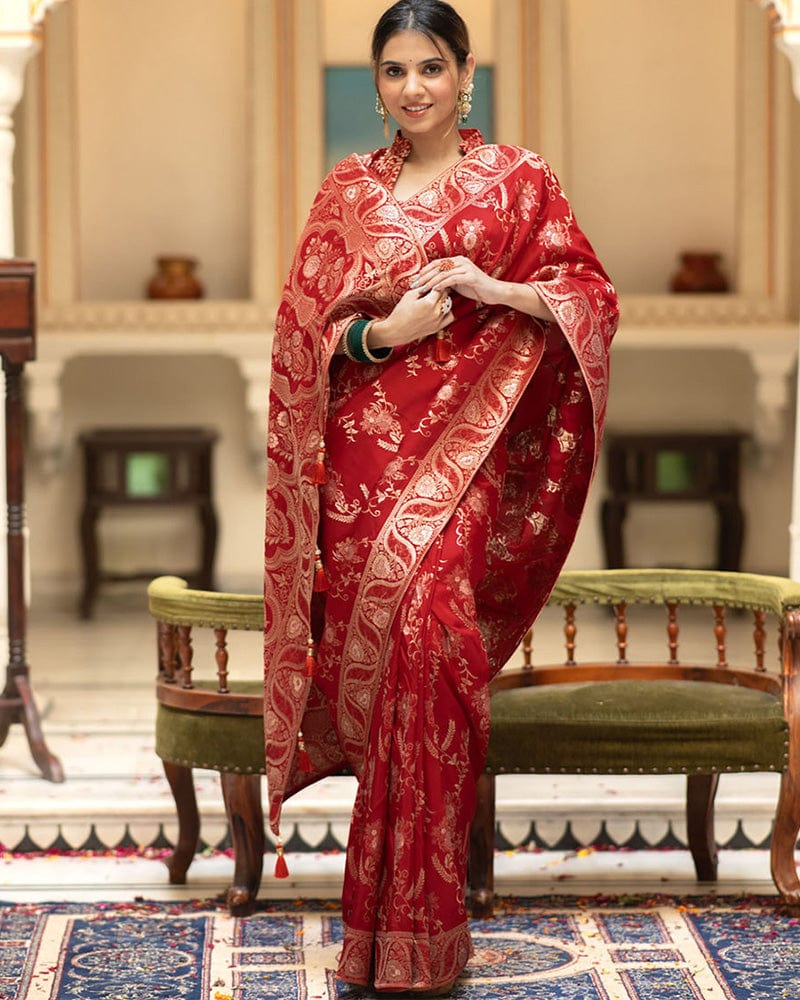 Red Color Banarasi Jacquard Zari Weaving Saree