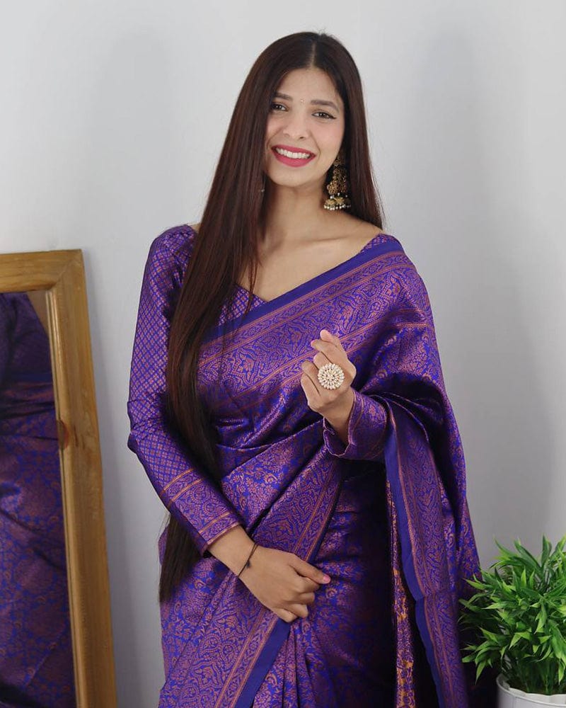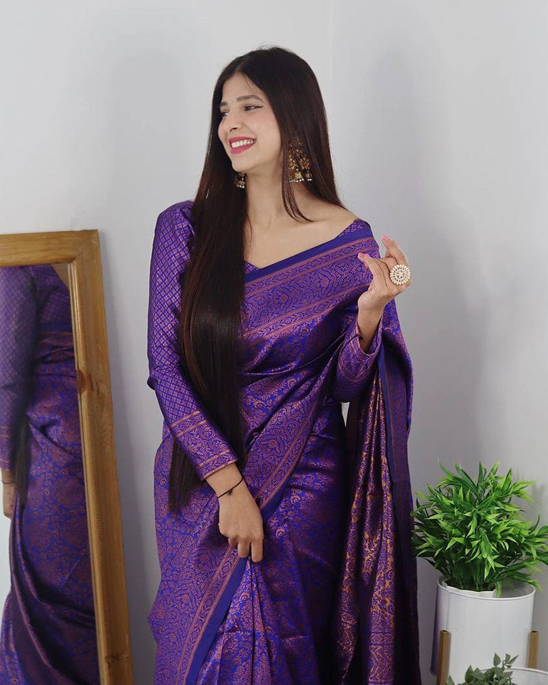 Royal Blue Color Banarasi Jacquard Soft Silk Saree