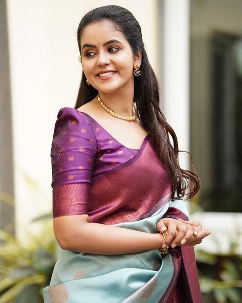 Sky Blue Color Banarasi Jacquard Soft Silk Saree