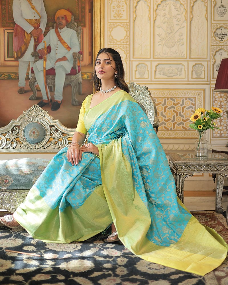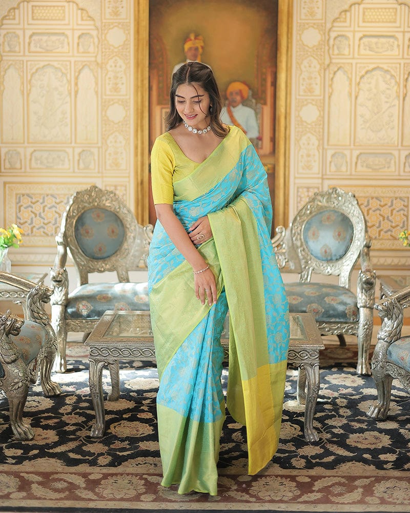 Sky Blue Color Kanjivaram Soft Silk Saree