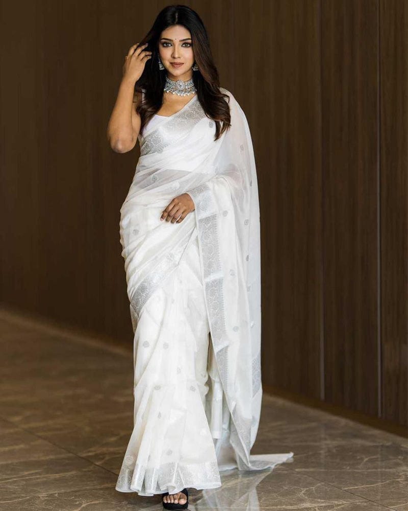 Embrace simplicity and elegance with this New Design White Soft Cotton Saree, a charming ensemble that seamlessly blends comfort with contemporary style. Crafted from soft cotton fabric, the saree drapes gracefully, offering both grace and ease. The pristine white color adds a touch of purity, making it a versatile choice for various occasions. The saree features a new design, incorporating modern elements while retaining the timeless appeal of tradition. Paired with an unstitched blouse piece, this ensemble allows you to customize your look effortlessly. Whether it's a casual outing or a festive celebration, the New Design White Soft Cotton Saree promises to be a graceful addition to your wardrobe, capturing attention with its unique design and understated allure.