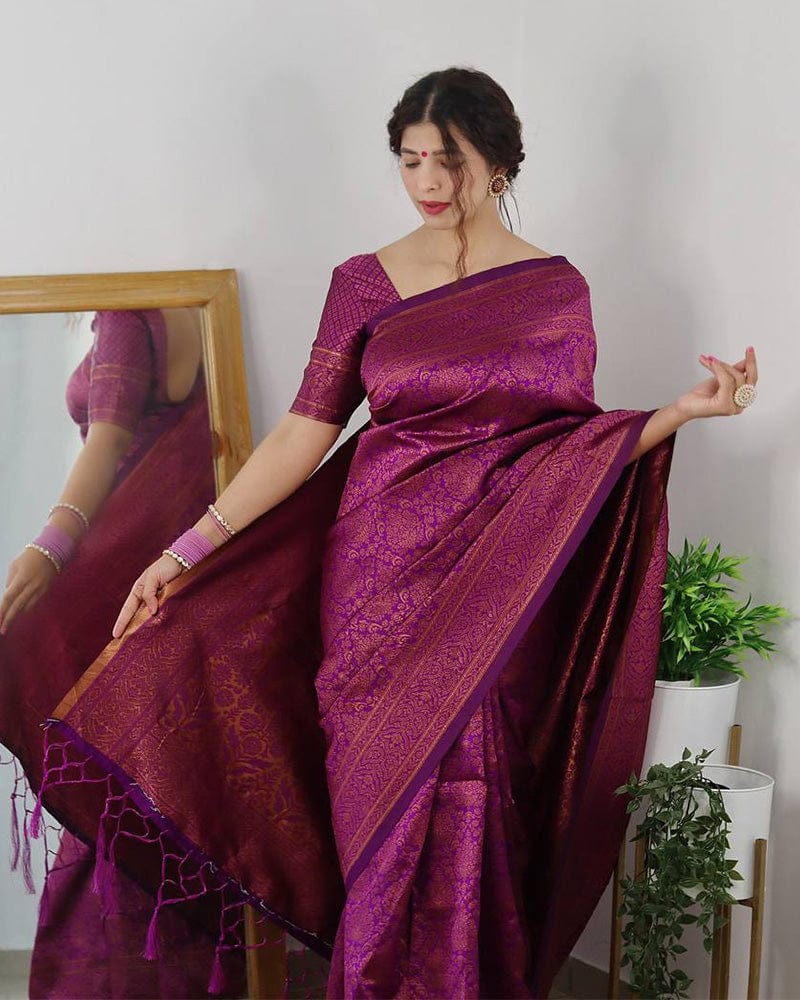 Wine Color Banarasi Jacquard Soft Silk Saree