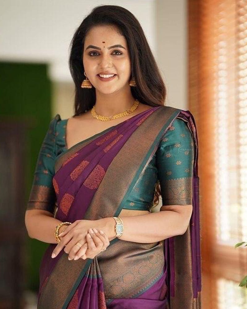 Wine Color Banarasi Jacquard Soft Silk Saree
