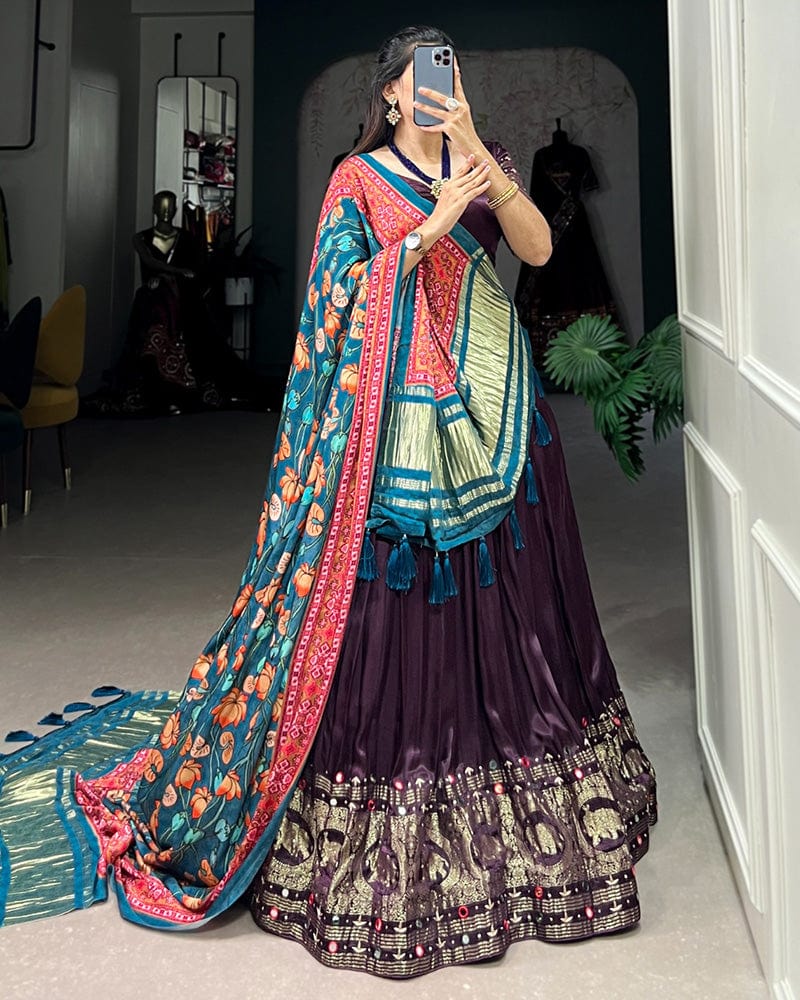 Wine Color Gaji Silk Real Mirror Work Lehenga Choli