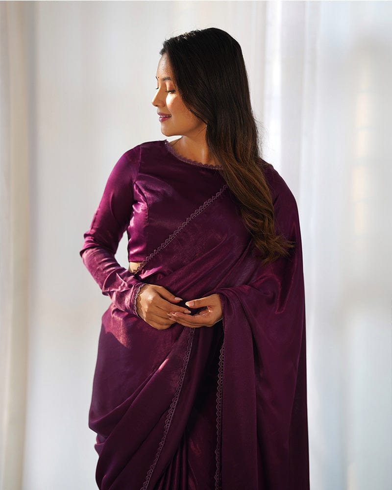 Wine Color Marble Velvet Pre Drapped Saree