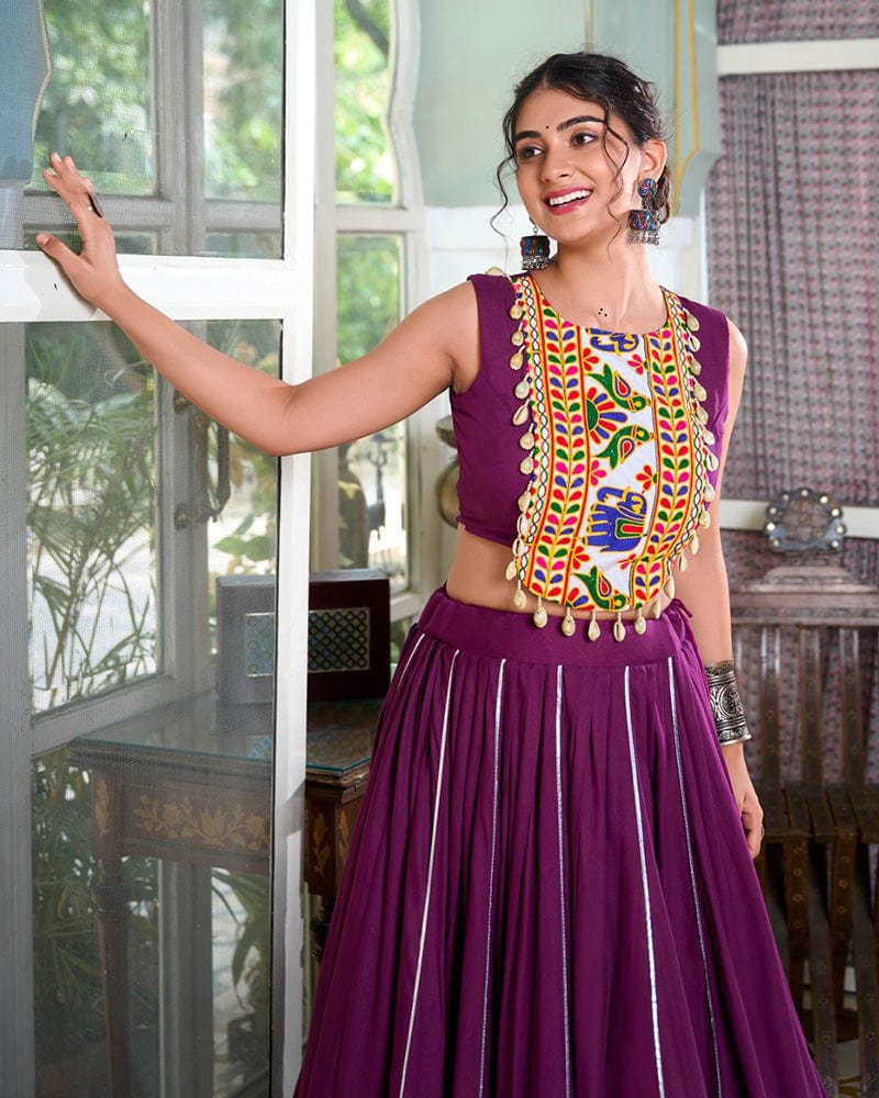 Wine Color Rayon Navratri Cowrie Touch Up Lehenga Choli