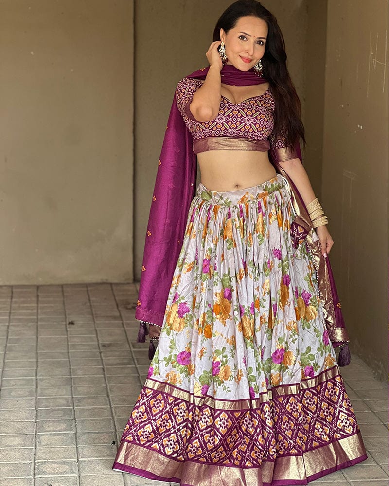 Wine Color Tussar Silk Floral And Patola Printed Navratri Lehenga Choli