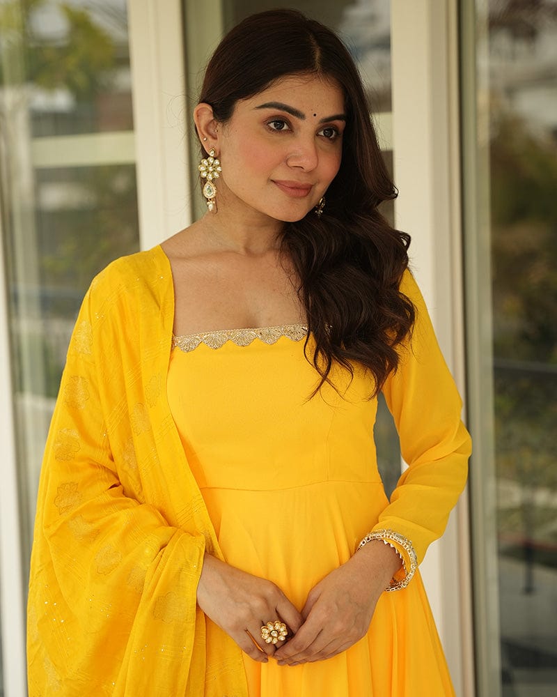 Yellow Color Georgette Three Piece Anarkali Suit